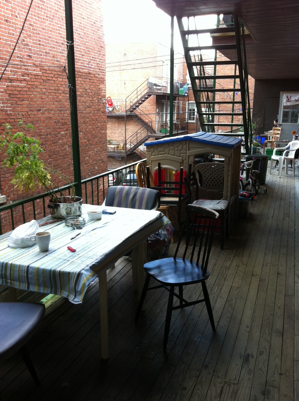 L’appartement a une assez grande terrasse avec l’ameublement (table et chaises) inclus.