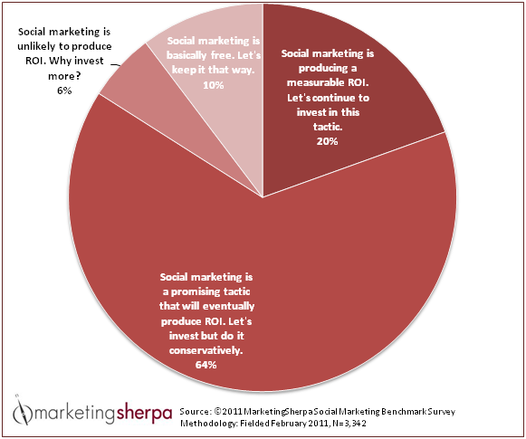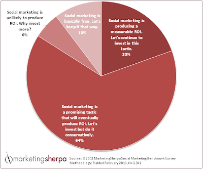Par ailleurs, voici à quoi ça ressemble lorsque on pose la question à des gens qui travaillent en agence de communications-marketing: «Which statement best describes how your typical client organization perceives social marketing's ability to produce a return on investment (ROI) at budget time?»:
