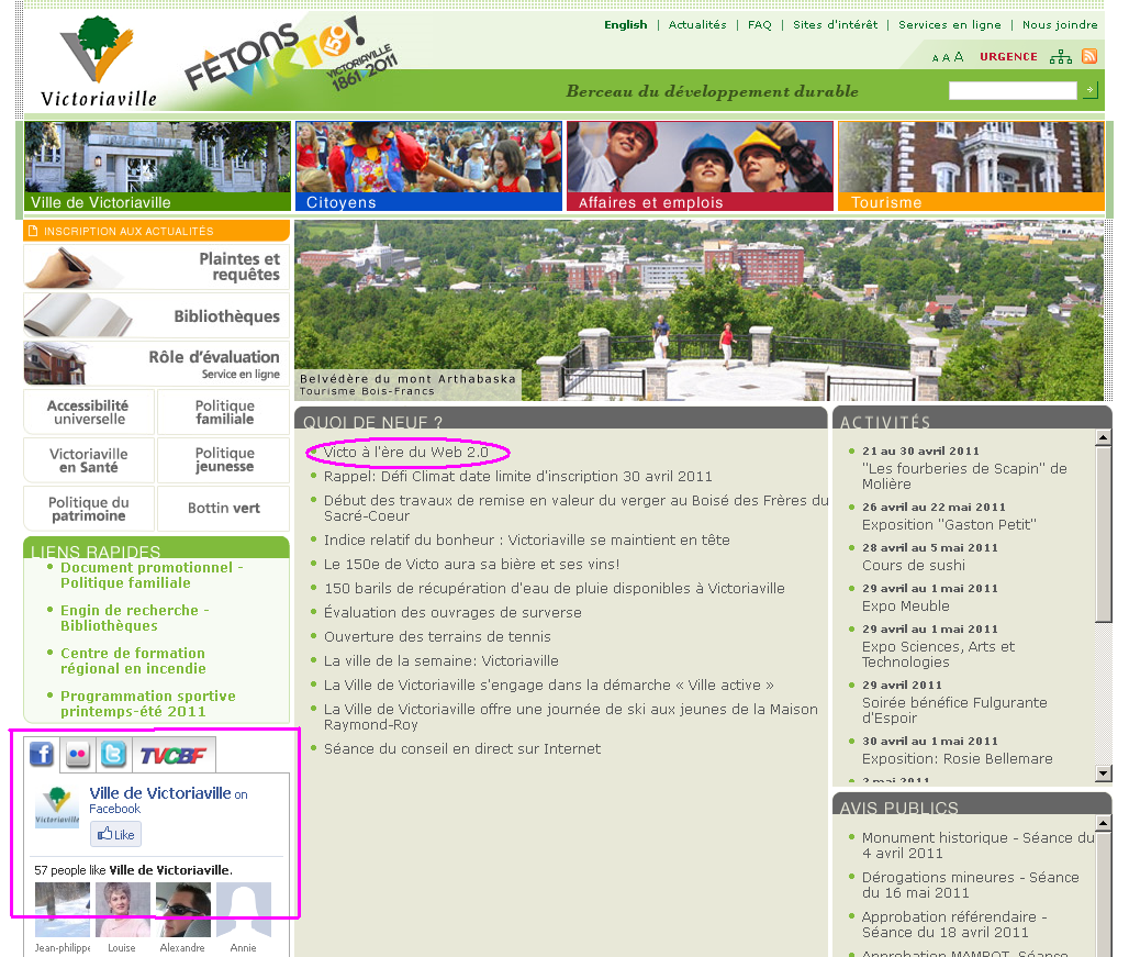 communiqué de presse qui nous explique, en long et en large et en termes relativement clairs, la démarche que vise Victoriaville dans sa démarche web 2.0.